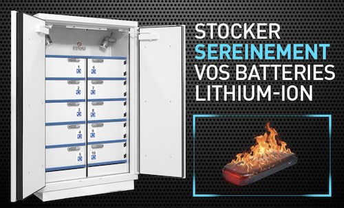 • Privilégier une armoire spécialisée pour le stockage des batteries lithium